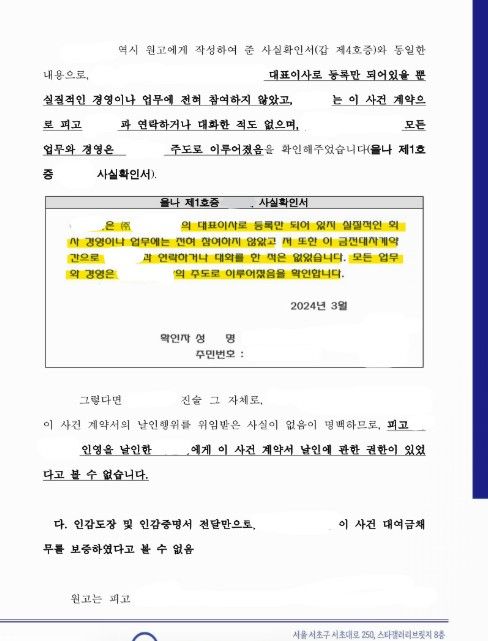 상담 과정에서 OO회사 직원이 의뢰인의 도장을 대신 날인한 사실을 확인하고, 곧바로 사실확인서를 받았음
