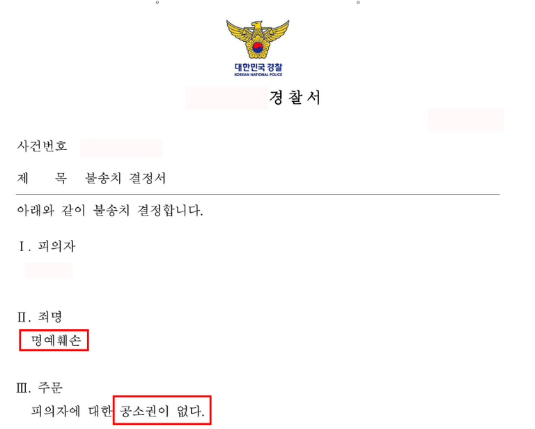 ![[명예훼손] 경찰 - 불송치](/_next/image?url=https%3A%2F%2Fd2ai3ajp99ywjy.cloudfront.net%2Fuploads%2Ftitleimage%2Foriginal%2F5c74fa6989f37c09d00babd8-original.jpg&w=3840&q=75)