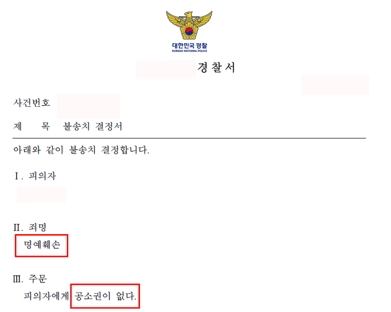 ![[명예훼손] 경찰 - 불송치](/_next/image?url=https%3A%2F%2Fd2ai3ajp99ywjy.cloudfront.net%2Fuploads%2Ftitleimage%2Foriginal%2F5b1a13e0670e780b1799eea4-original.jpg&w=3840&q=75)