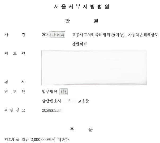 자동차손해배상보장법위반 혐의로 기소된 사안입니다.