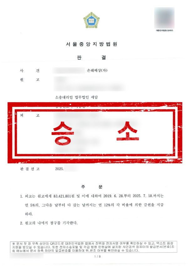 총 8,300만 원이 넘는 손해배상을 인용했습니다.