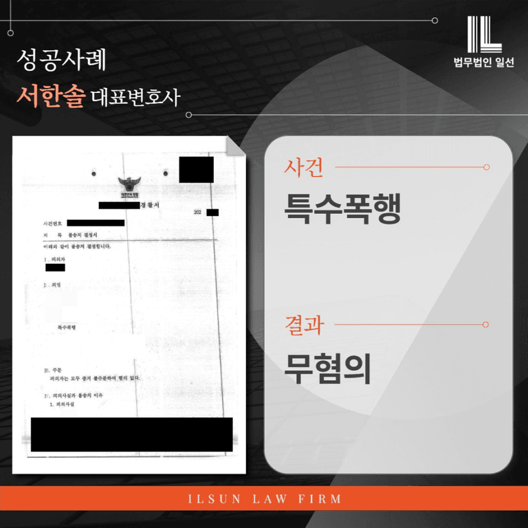 마침내 의뢰인에 대한 사건은 ‘무혐의’로 종결되었고 형사절차는 더 이상 이어지지 않았습니다.