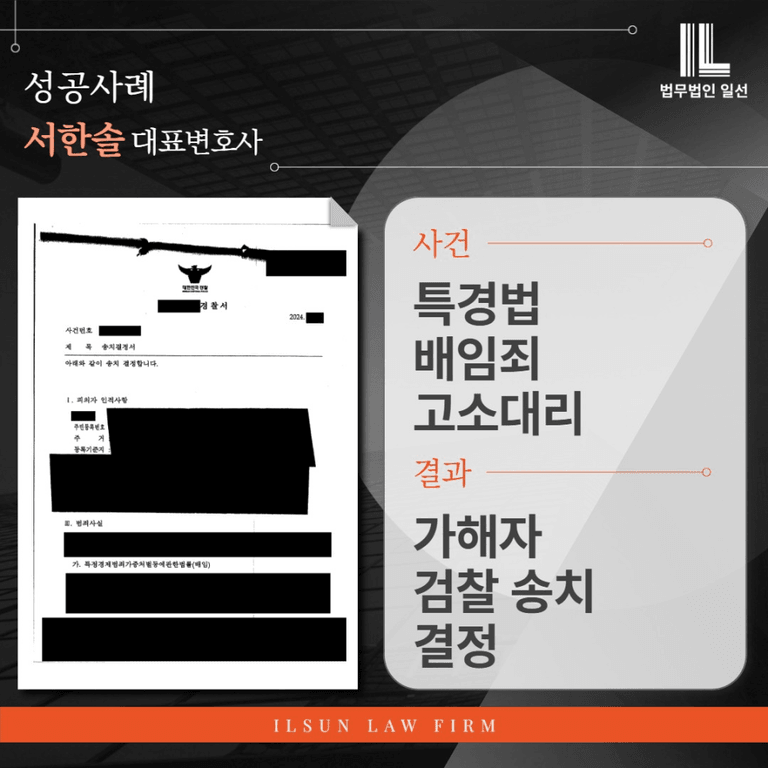 특경법 배임죄 고소대리 → 결과 : ‘검찰 송치’ 결정