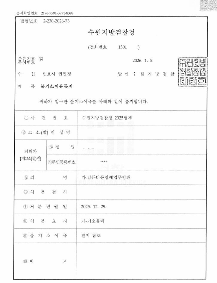 그 결과 검찰은 해당 사건을 전체 기소유예 처리하였습니다.