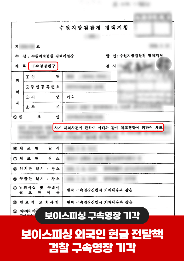 의뢰인이 약 1억 원 상당의 피해금을 전달받아 해외 계좌로 송금했다는 것. 외국인이라 도주 우려가 높고, 조직범죄 특성상 증거인멸 가능성도 있다며 구속영장을 청구했습니다.