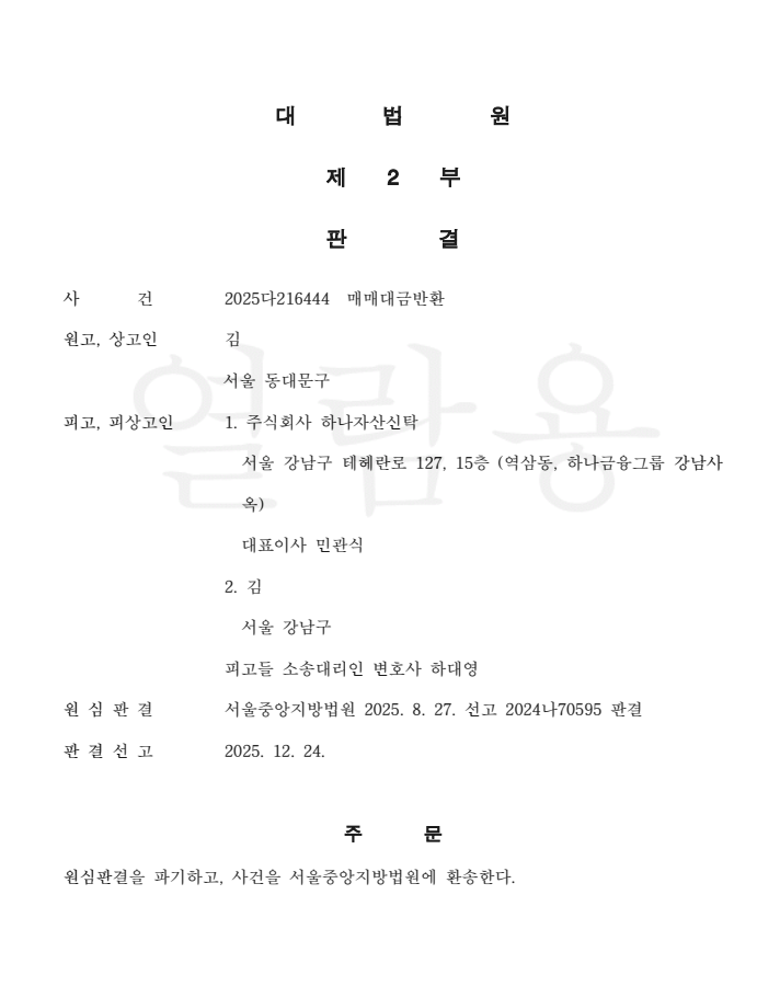 본 사건은 서초구에 위치한 이른바 하이엔드 오피스텔 분양자가 1심 및 2심을 패소한 상황에서, 대법원에 상고하여 파기환송(승소)판결을 받은 뒤집기 성공 사례입니다.