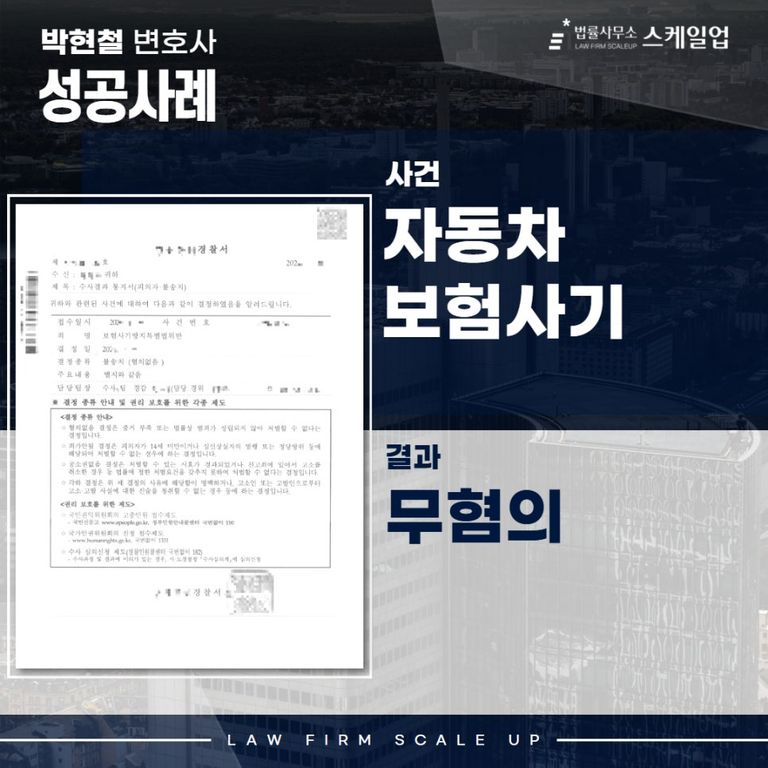 결과적으로, 의뢰인에 대해 제기되었던 보험사기 혐의는 ‘무혐의’ 처분으로 종결되었습니다.