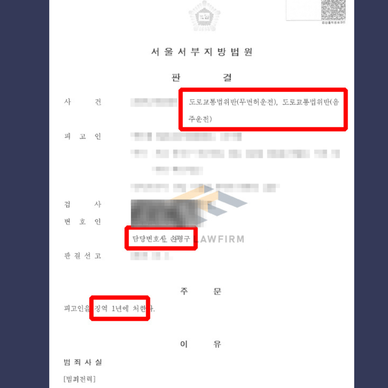만일, 음주운전 및 도로교통법 위반 관련하여 법적으로 해결해야 할 문제가 있으시다면 본 변호인과의 상담을 통해 최선으로 해결해 보시기를 바랍니다.