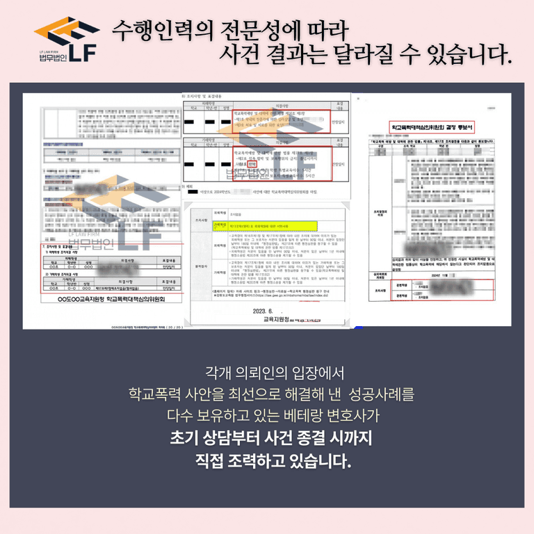 개별적인 상황이나 조건은 물론, 담당 변호인의 역량에 따라서도 가해학생/피해학생에 대한 조치는 달라질 수도 있습니다.