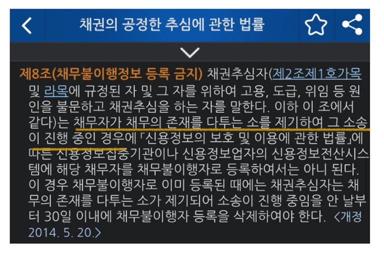 채무의 존재를 다투는 소를 제기하면 채권추심법에 의하면, 신용불량/채무불이행자로 등록된 내용을 30일내 삭제하게 되어 있습니다.