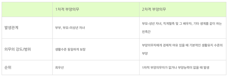 법에서 규정하고 있는 부양의무는 1차적 부양의무와 2차적 부양의무로 구분할 수 있습니다.