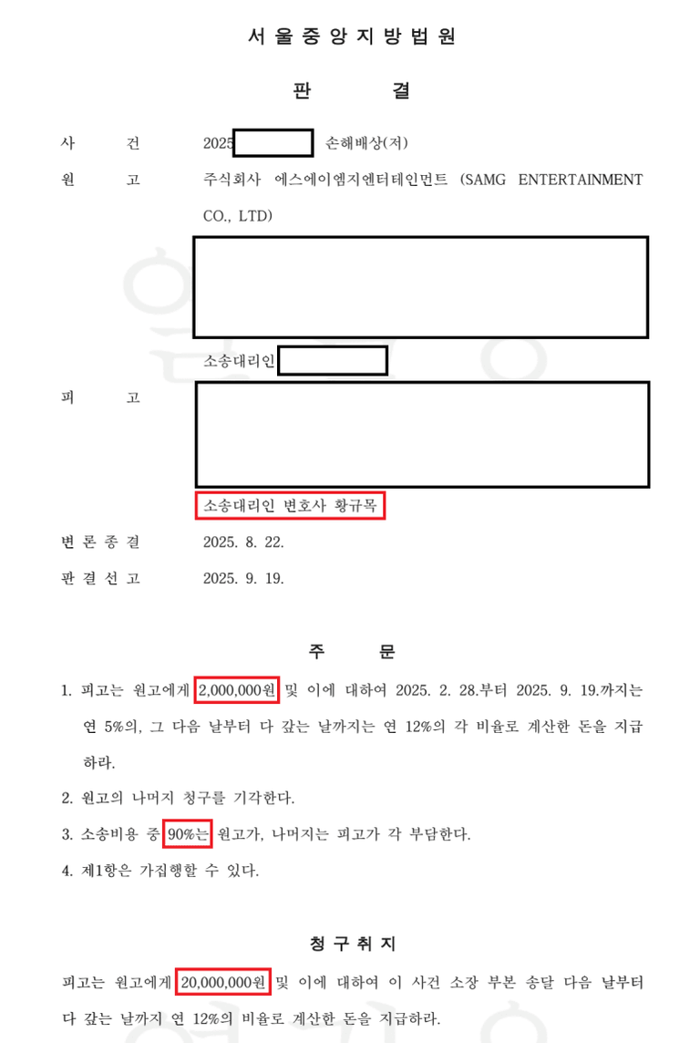 → 법원에서 200만원만 인정받았습니다. (90% 감액 성공)