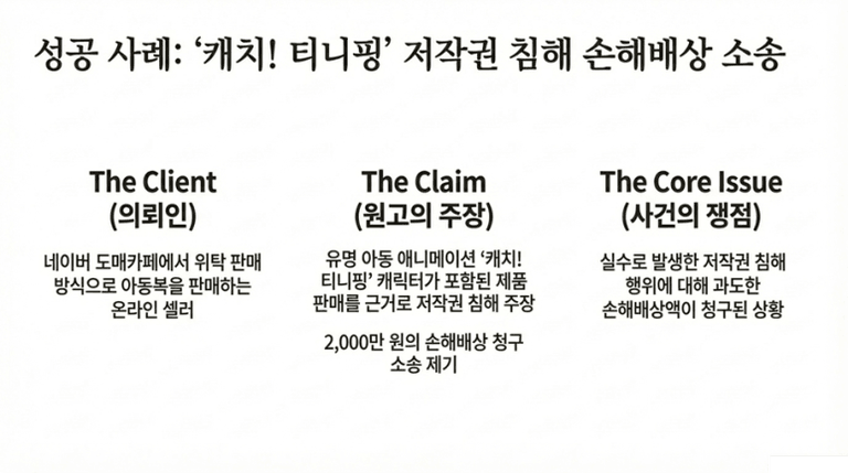![[저작권침해 손해배상청구] '캐치티니핑' 90%감액 성공사례](/_next/image?url=https%3A%2F%2Fd2ai3ajp99ywjy.cloudfront.net%2Fuploads%2Ftitleimage%2Foriginal%2F5b19e5b5d64c1b0b5924b008-original.jpg&w=3840&q=75)