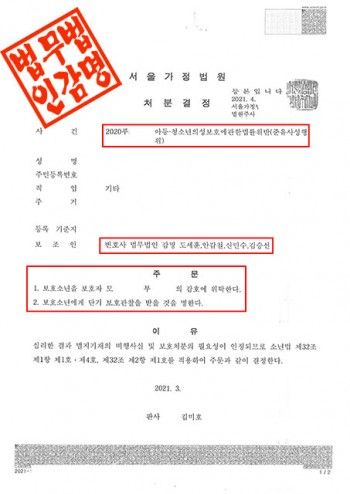 서울가정법원은 이 사건에 대해 다음과 같이 선고 하였습니다.