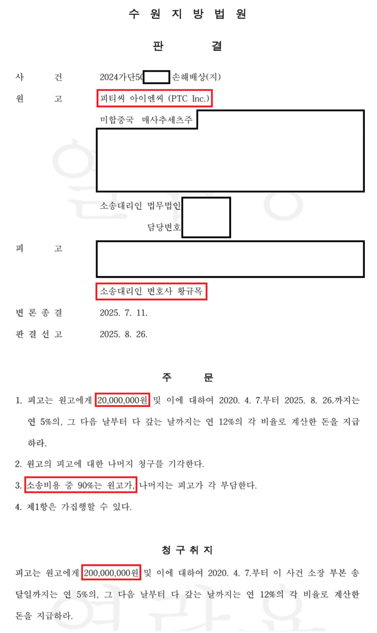 결과적으로 법원은 원고 청구액의 90%를 배척하고, 피고 측 주장을 주요 부분에서 받아들였습니다. 소위 말해 '0'이 하나 빠진 셈입니다.