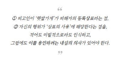 상표권침해죄가 성립하려면 ‘미필적 고의’가 필요합니다. 즉,