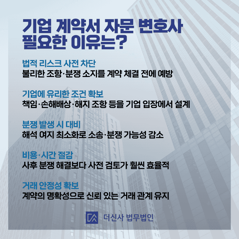 기업자문변호사는 단순히 계약서를 “검토”하는 데 그치지 않습니다. 실제 거래 구조와 자금 흐름을 분석해 분쟁 가능성이 높은 부분을 사전에 정리하고, 하도급법이나 공정거래 관련 규제 위반 소지가 없는지까지 함께 점검합니다.