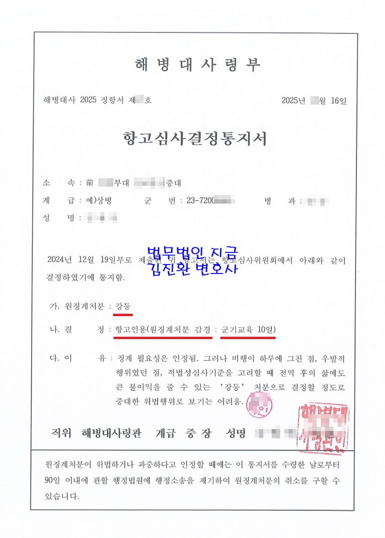혹시 의무복무 중에 강등 징계처분을 받아 고민인 분이 계신다면 언제든지 연락주시기 바랍니다.