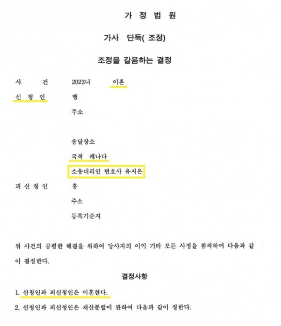 그 결과 해외송달 절차를 거치지 않고 약 2개월 만에 강제조정결정으로 이혼이 성립되었습니다.