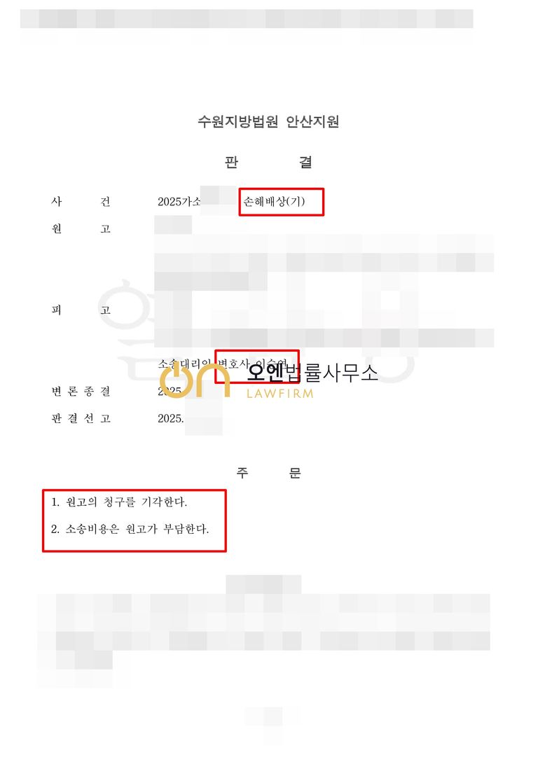 법원은 담당변호사의 주장을 받아들여, 원고의 청구를 모두 기각하였습니다.
