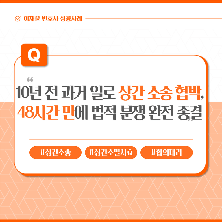 의뢰인은 10년가량 전 부정행위를 한 사실이 있고 이를 4년 전 상대방의 아내가 알게 되었습니다. 당시에는 아내분께서 어떠한 청구를 하지 않고 대화만 하셨으며 이후 상대방을 더 만난 사실은 없었습니다. 그러나 갑작스레 최근 상간 소송을 제기하고 다른 사람들에게 상간 사실을 알리겠다고 의뢰인을 압박하였고 합의를 위하여 법무법인 새움을 방문해주셨습니다.