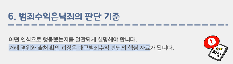 거래 경위와 출처 확인 과정은 대구범죄수익 판단의 핵심 자료가 됩니다.