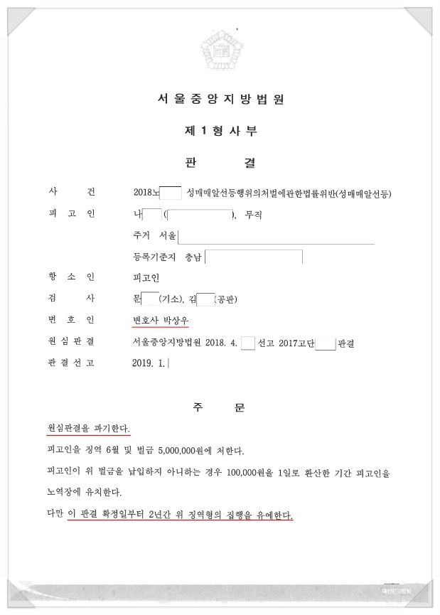 의뢰인은 성매매 알선 혐의가 적발되어 재판을 받게 되었습니다. 그러나 저희 의뢰인은 재판 과정에서 적절한 변론도 펼치지 못하였던 바람에 1심에서 징역 6개월, 벌금 500만 원의 실형을 선고받고 구속되었습니다.