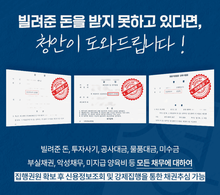 안녕하세요. 법률사무소 청안의 채권추심전문변호사 김정현입니다.