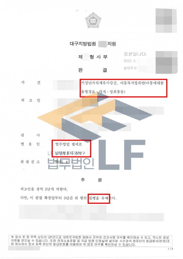 또한 의뢰인이 미성년자 성범죄를 이전에도 저질렀던 전적이 있었던 것은 매우 불리한 조건이었으나, 범행과는 별개로 의뢰인이 한 가정을 이루고 있는 가장으로써 가족들을 최선을 다해 부양하고 있었던 점 등은 의뢰인에 대한 선처를 호소하는데 도움이 될 수 있을만한 부분이었습니다.