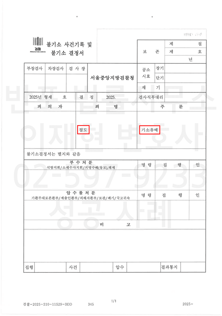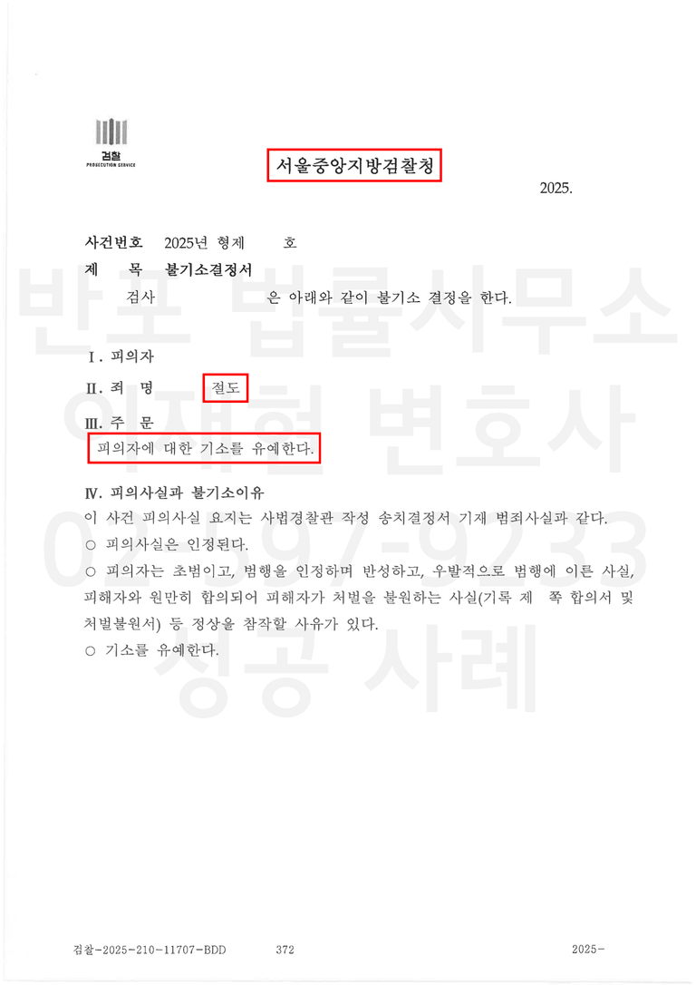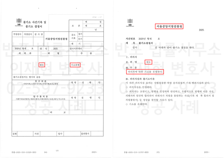 최종적으로, 절도 혐의에 대해 기소유예 처분이 내려졌습니다.