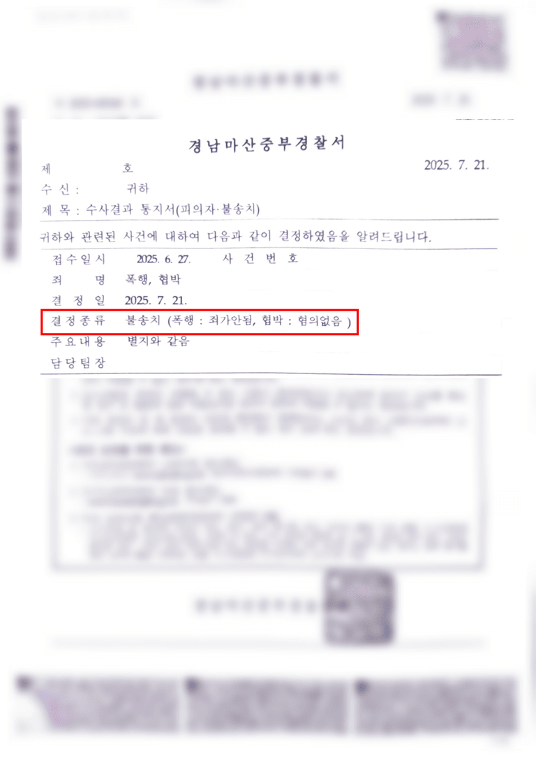 또한 의뢰인이 폭행의 피해자라는 점을 분명히 하기 위해, 의료기관 진단서 및 진료 기록,피해 상태를 촬영한 사진 자료를 수집하여 제출했습니다.