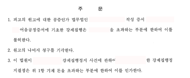 의뢰인은 상대방으로부터 공정증서를 받아 강제집행 하였는데, 상대방이 공정증서가 무효라며 청구이의 소 제기