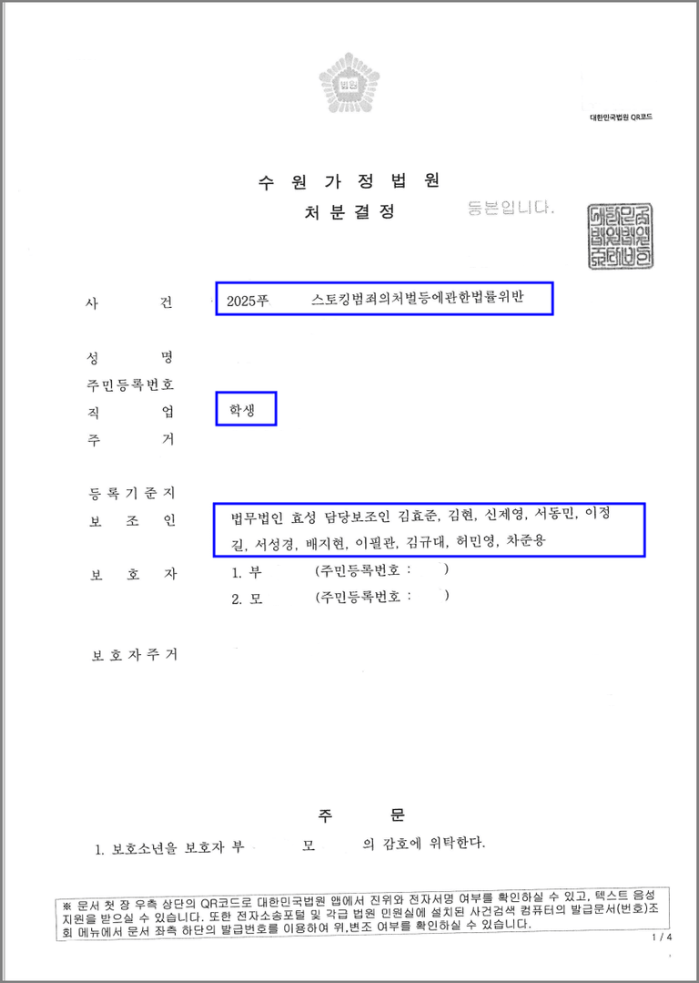 🔎 성공사례 | 스토킹·명예훼손 혐의, 경미한 보호처분으로 마무리