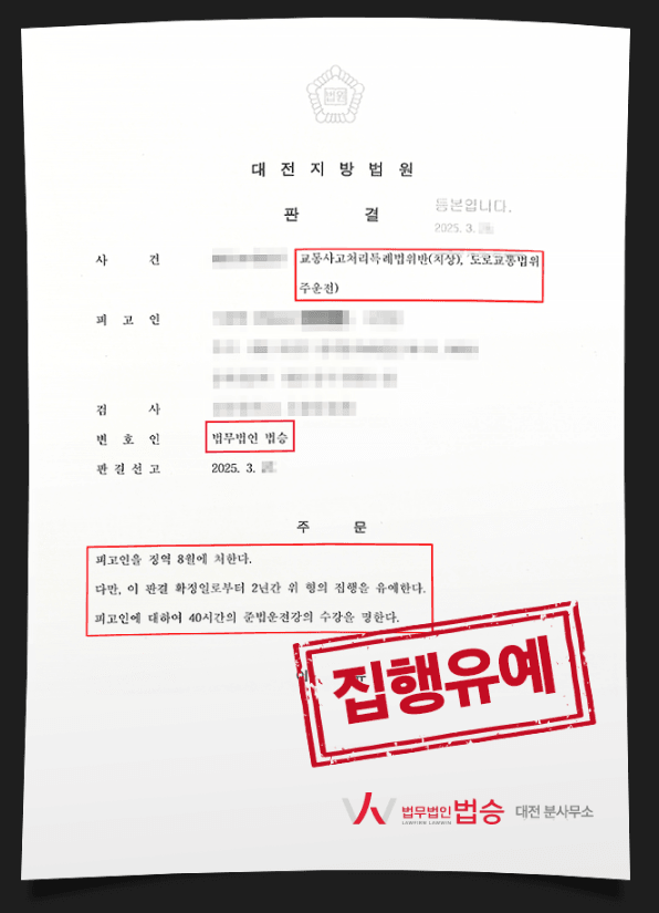 법승 성공사례 1) 음주운전 누범 4회 집행유예
