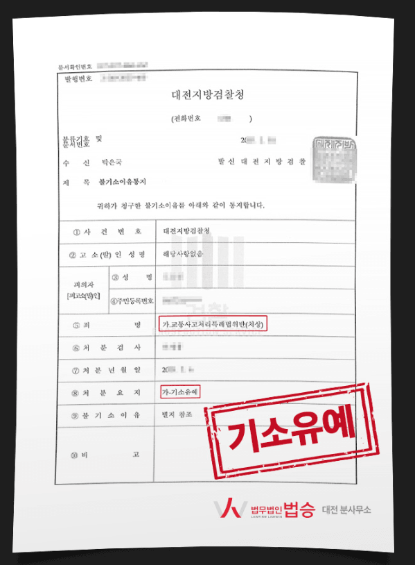 법승 성공사례 2) 교통사고처벌불원확인서로 합의 진행, 기소 유예 결과