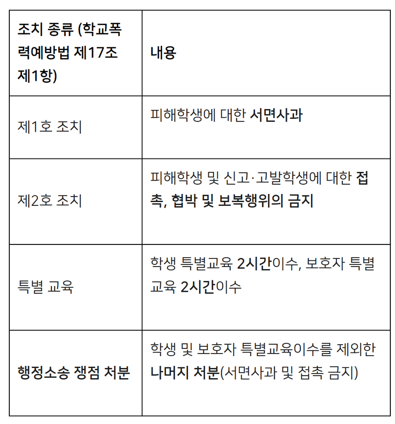 학폭위 조치 내용