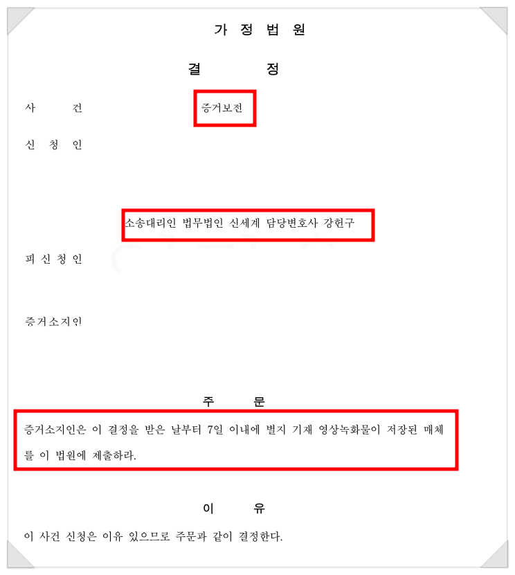 이 결정문으로 모텔에서 상간남 CCTV 영상을 안정적으로 확보했고,