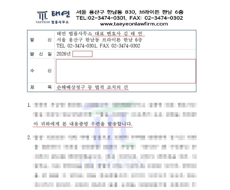 [ 태연법률사무소가 진행한 반려동물 손해배상 내용증명 발송 ]