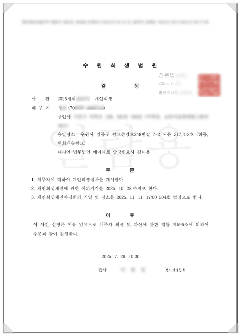 ![[개인회생] 70년생 개인회생 면책 후 5년뒤 재신청, 개시결정](/_next/image?url=https%3A%2F%2Fd2ai3ajp99ywjy.cloudfront.net%2Fuploads%2Ftitleimage%2Foriginal%2F5c3c3a43d6eaba3fdcd0b96f-original.jpg&w=3840&q=75)