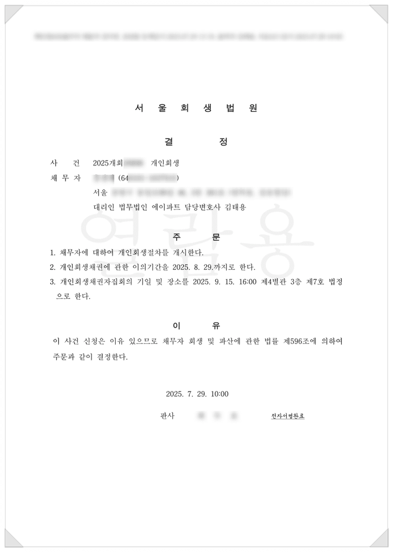 개시결정을 받아낼 수 있었습니다.