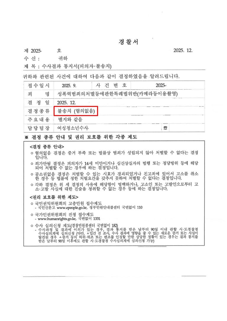 5. 위와 같은 사정들을 종합하여 변호인 의견서를 제출한 결과, 수사기관은 본 사건에 대하여 혐의없음으로 불송치 결정을 하였습니다.
