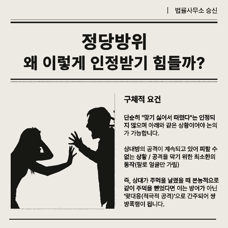 오늘은 정당방위를 주장했는데 쌍방폭행이 되는 이유와