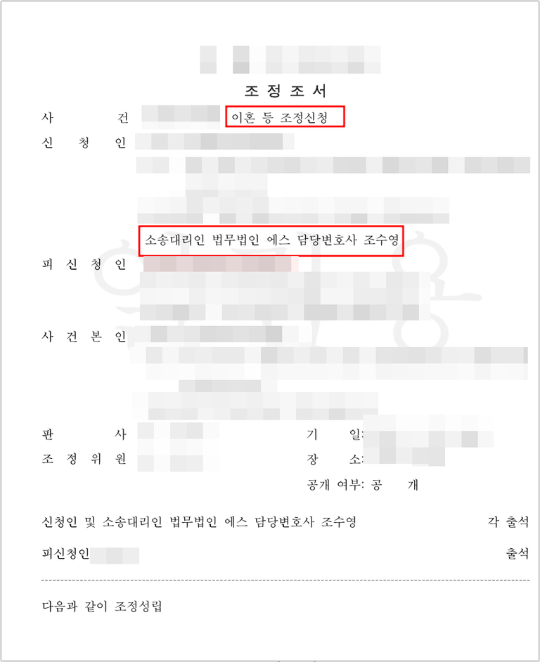 하지만 의뢰인분은 아이들을 생각해서라도 아내와 소송보다 조정으로 잘 마무리 하기를 원했고, 이에 남편을 상대로 이혼조정신청을 하게 되었습니다.