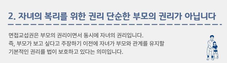 가장 중요한 것은 아이의 행복이며 그 행복을 지키는 법적 첫걸음이 바로 면접교섭권입니다.