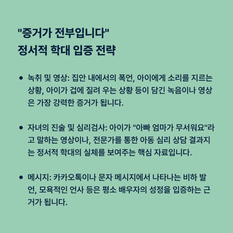 "증거가 전부입니다" 정서적 학대 입증 전략