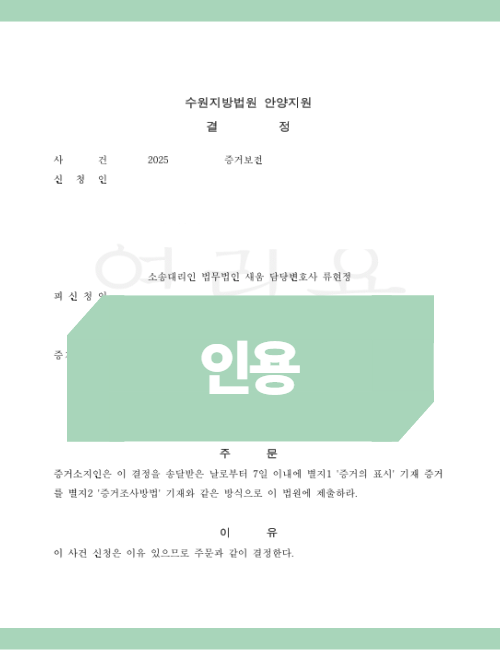 심리적 우위: 사전처분 결정은 본안 판결의 가이드라인이 되며, 상대방이 이를 이행하지 않을 경우 감치나 과태료 등 법적 제재를 가해 심리적 압박을 줄 수 있습니다.