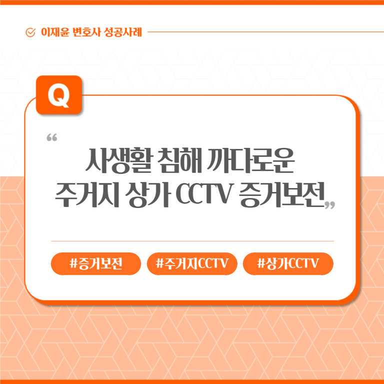일반적으로 CCTV 증거보전을 많이 신청하는 모텔과 달리 거주지, 상가 등은 사생활의 보호성이 더 크므로 기각 결정이 나오는 경우가 많습니다. 따라서 인용 받을 수 있도록 최선을 다했습니다.