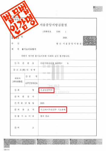 수원지방검찰청은 이 사건에 대해 다음과 같은 사유로 불기소 결정을 하였습니다.