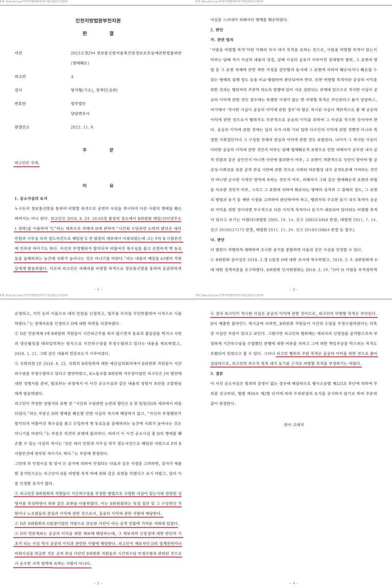 [국회의 위원회 팀장이었던 사람은 공적 인물에 가까운 지위라는 사례 : 인천지방법원 부천지원 2023. 11. 19. 선고 2023고정294 판결]