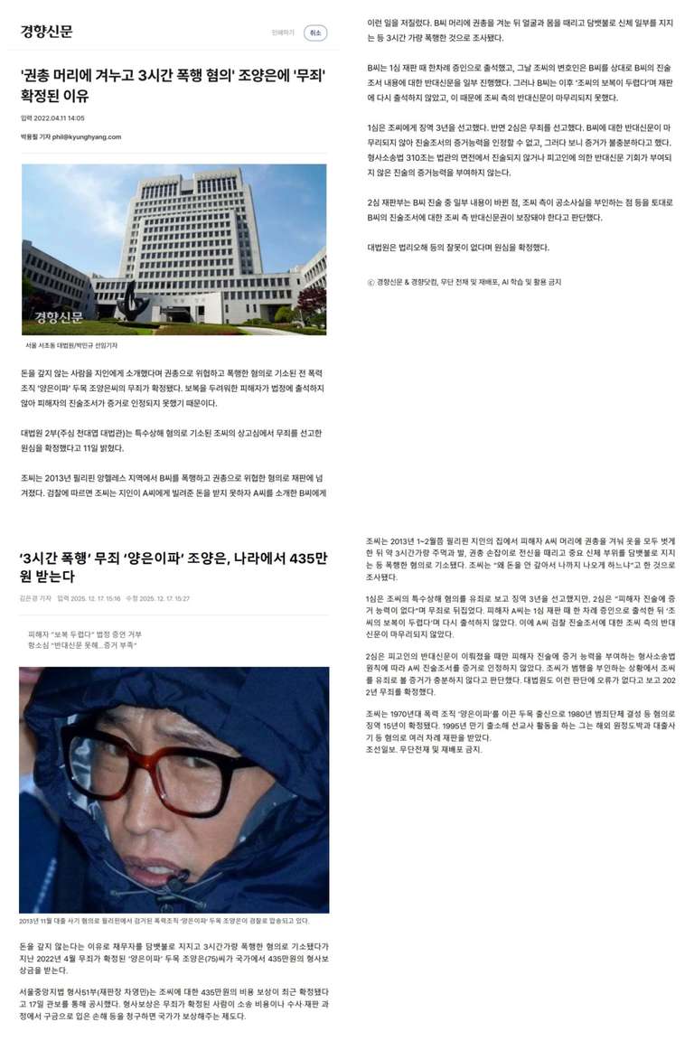 양은이파 조양은이 국가로부터 435만 원을 받는다는 보도가 있었습니다. 조양은 “3시간 폭행 무죄”라는 사건은 조양은이 2013년 초 필리핀에서 “소음기를 단 권총을 머리에 겨누고 옷을 벗게 한 뒤, 권총 손잡이와 손발로 A씨의 온몸을 여러 차례 때리고 담뱃불로 신체를 지지는 등 장시간 폭행(JTBC 기사 인용, 이하 ‘조양은의 범행’이라 함)”하였다는 것인데 무죄가 확정되었습니다.